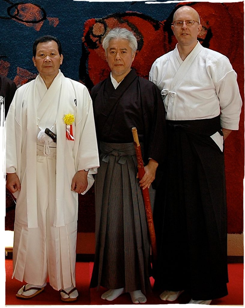 De izquierda a derecha: Gran Maestro Watanabe Tadashige, Sensei Shioda Masami, Sensei Vernon Church.